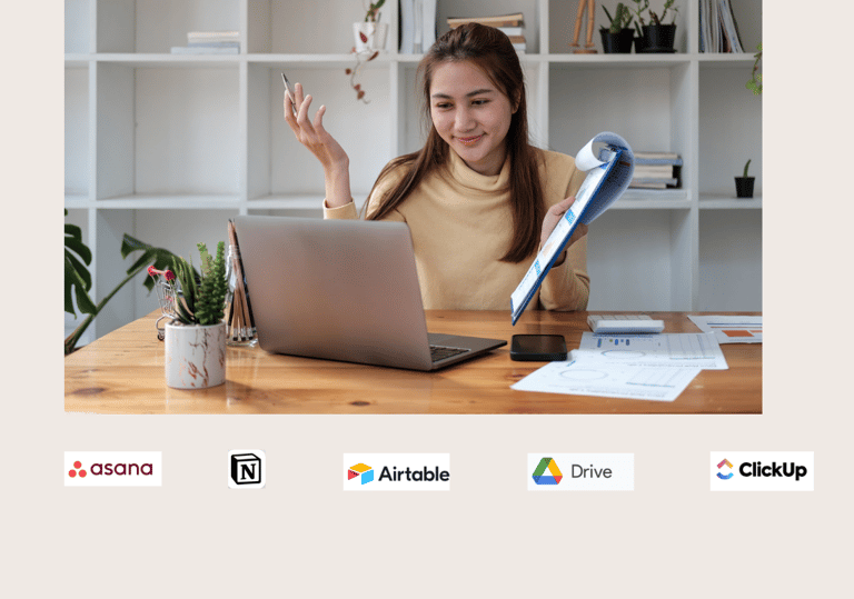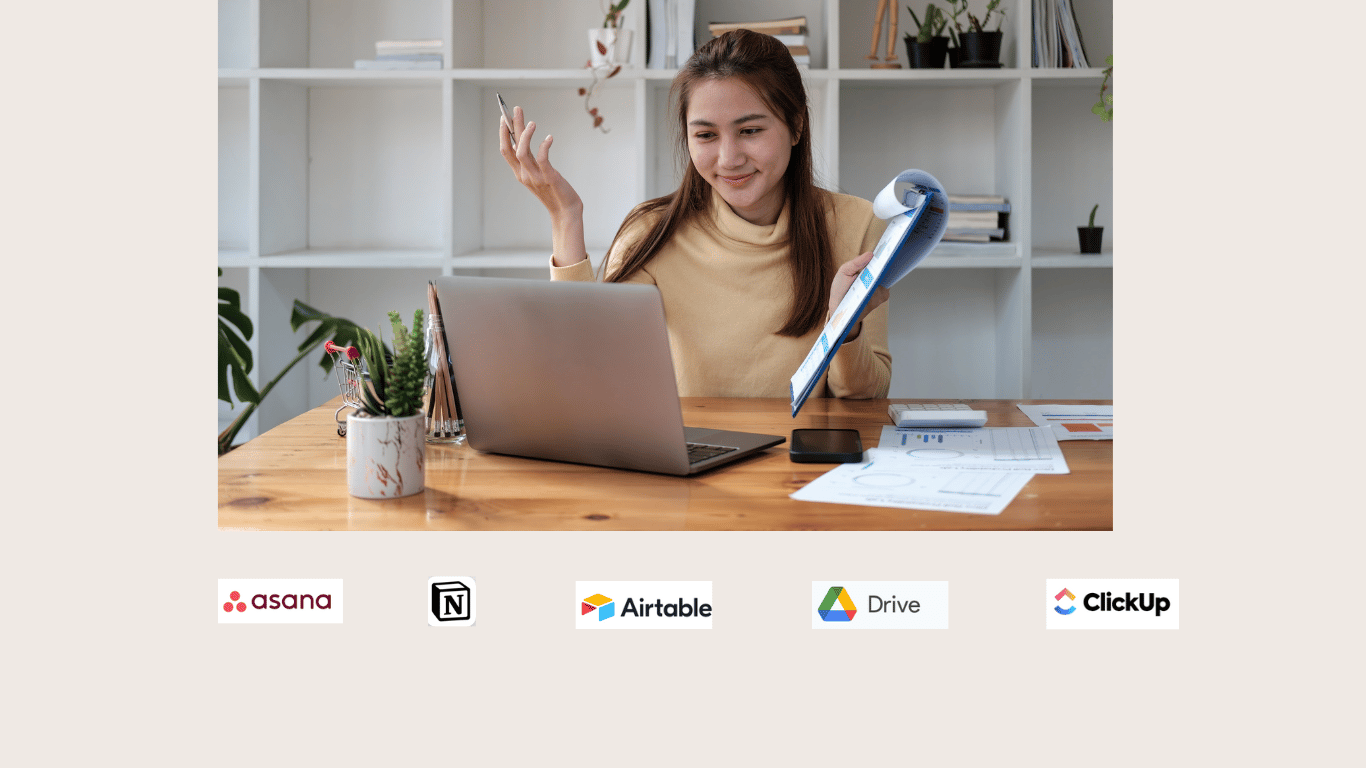 Utilizo herramientas como Asana, Notion, Airtable, ClickUp y Google Drive para gestionar tareas, organizar documentos y optimizar tus flujos de trabajo digitales.